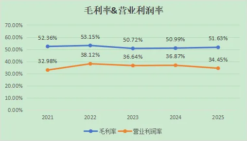 对于生产制造行业来说,这个毛利率和营业利润率表现都还算很不错和稳定。