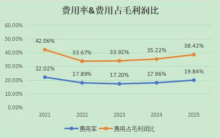 在毛利润变化不大的情况下,费用率的起伏带动费用占毛利润比例同步起伏。