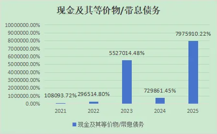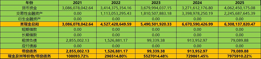 6. “现金及其等价物÷带息债务”:万一债主一起上门收回借款,公司能不能还得上,看企业的安全性,虽说一般都不会出现此种情况,就像银行一般都不会出现挤兑一样。但巴芒二老的理念之一就是,如果一件事情最坏的结果我接受不了,那么我就不会去做这件事,因为再多的涨幅,都经受不住一次归零。