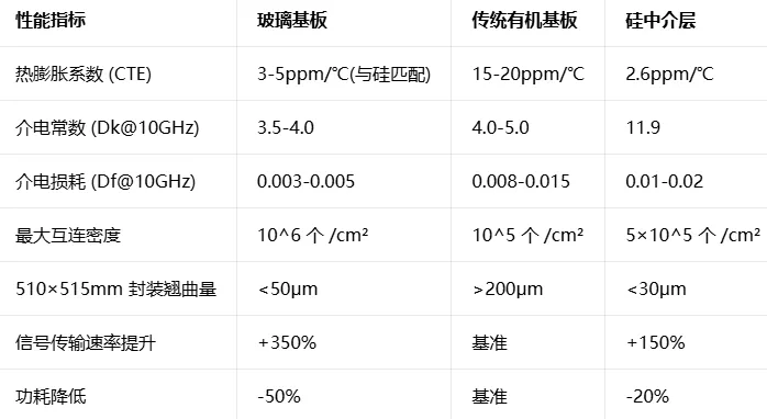 半导体封装玻璃基板是后摩尔时代 AI 芯片 2.5D/3D 封装的革命性核心材料,通过 TGV (玻璃通孔) 技术实现高密度垂直互连,彻底解决了传统有机基板在大尺寸 AI 芯片封装中面临的翘曲变形、信号损耗、互连密度不足三大物理极限问题。