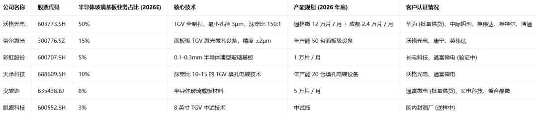 1.核心标的:沃格光电 (国内唯一掌握 TGV 全制程并实现量产的企业)、帝尔激光 (TGV 激光设备国内龙头,卖铲人逻辑)