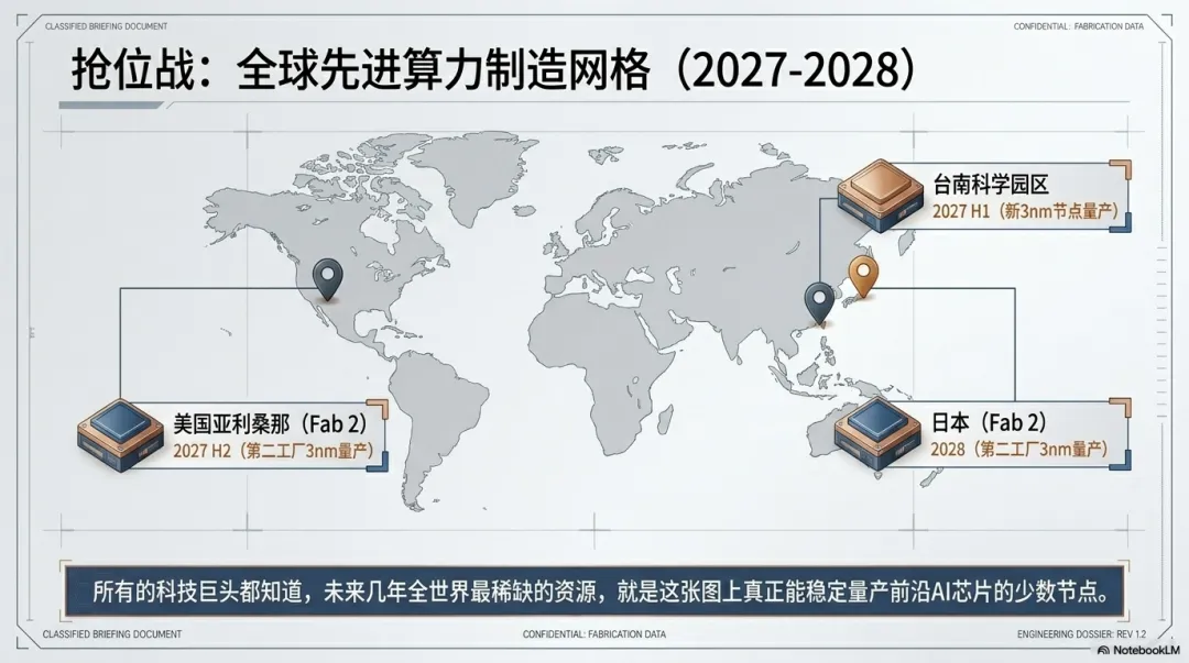 这不是普通的产能规划,而是一场全世界围绕先进制程展开的抢位战。所有人都知道,未来几年最稀缺的是能真正稳定量产先进AI芯片的那一小部分前沿制造能力。