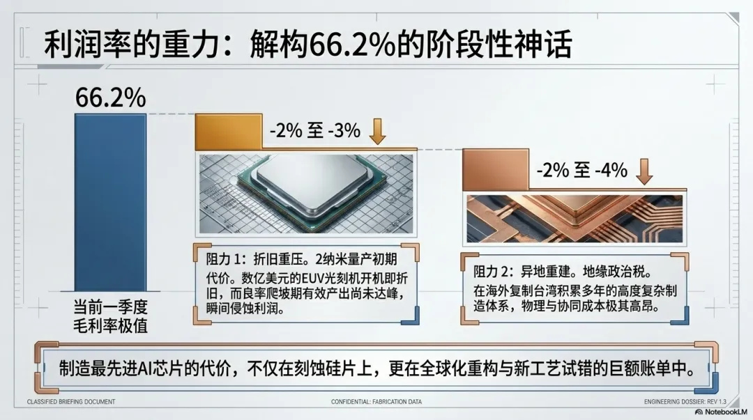 问题是,新节点量产初期,良率通常还在爬坡阶段。也就是说,折旧成本已经瞬间拉满,但能卖钱的有效产出还没有到峰值。这种时间差,会直接侵蚀盈利能力。
