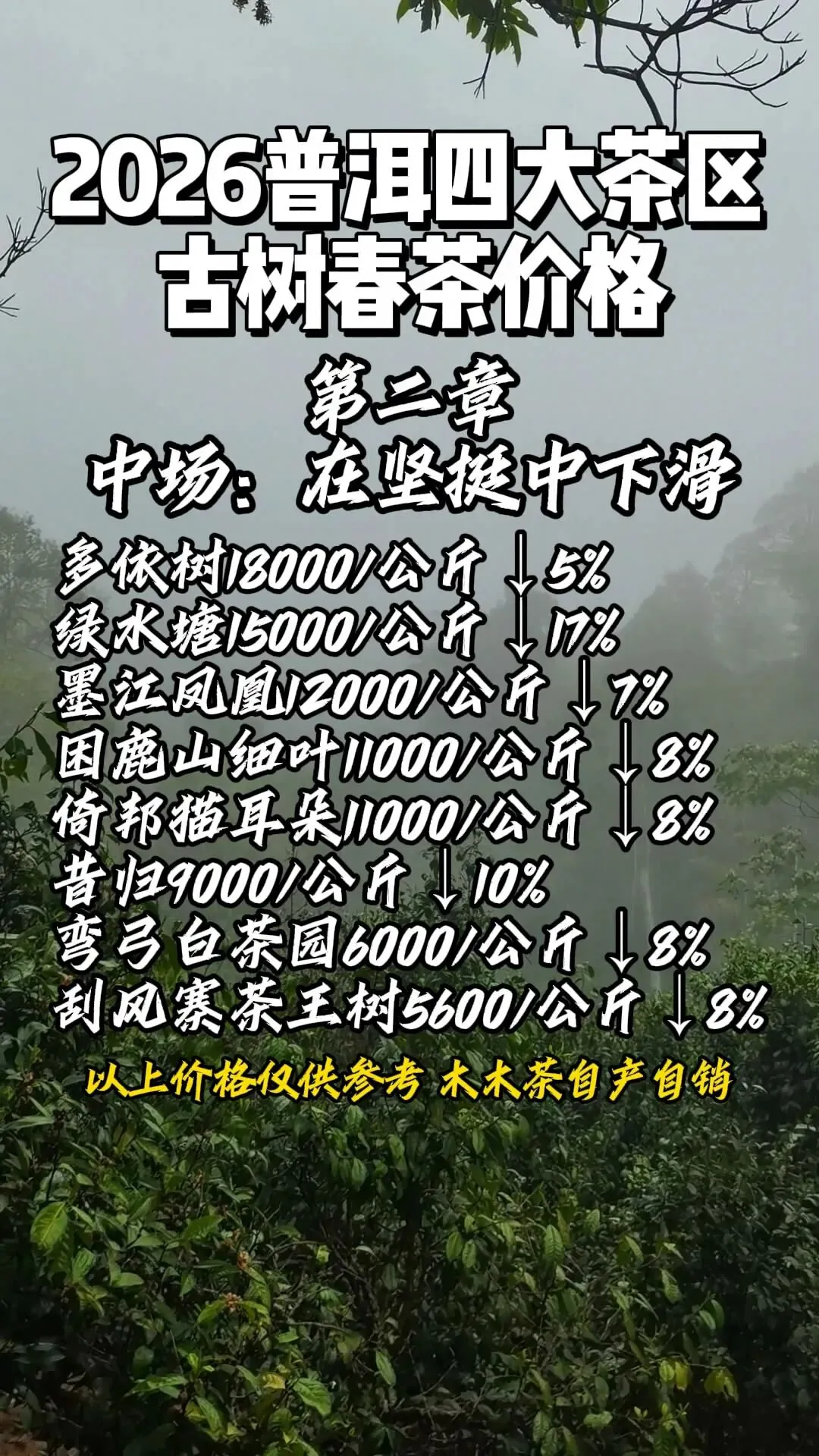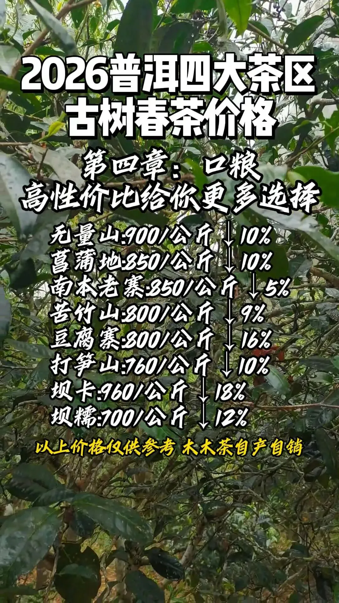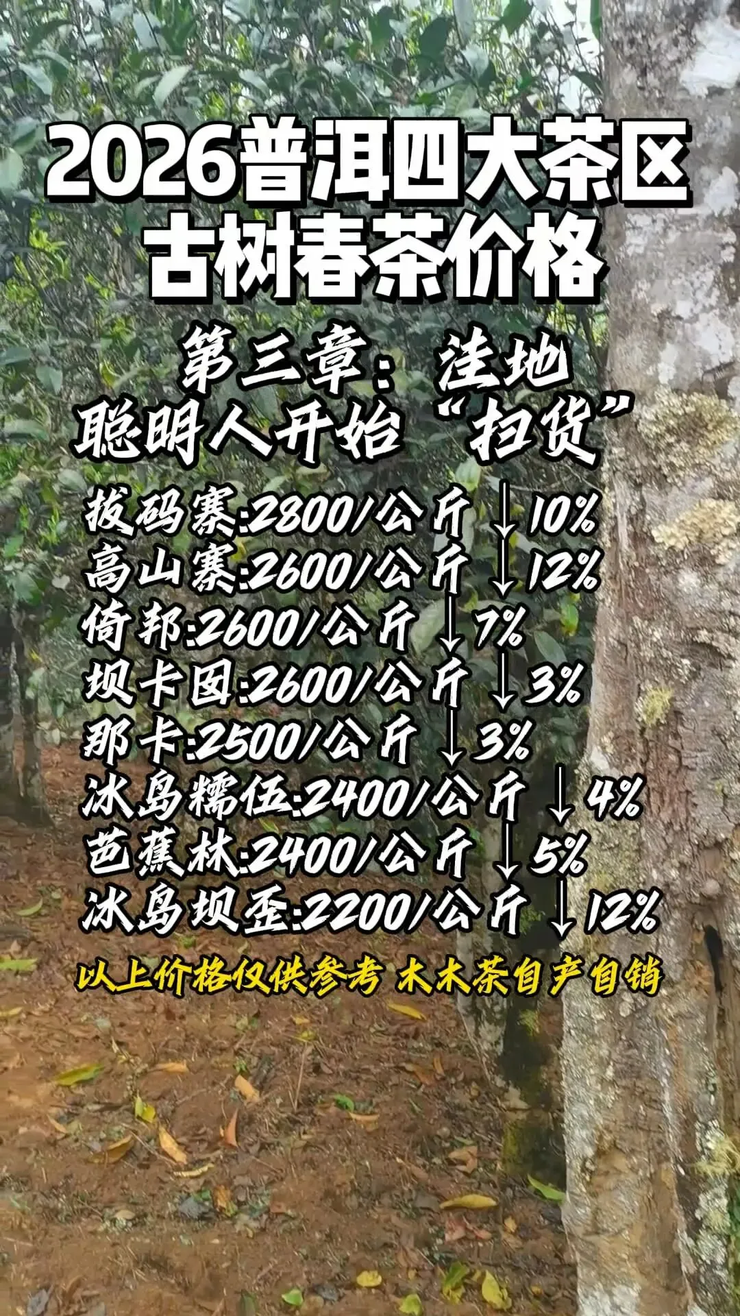 以下为多方信息汇总的2026年代表性山头古树春茶毛料市场参考价。请注意:价格因具体地块、树龄、工艺差异极大,且为动态早期报价,仅为趋势分析提供观察窗口,绝非交易依据。