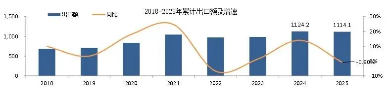 图12018~2025年家电行业出口额及增速