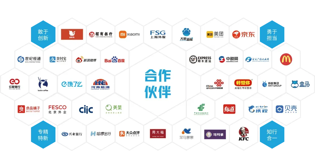 服务对象包括京东、顺丰、小米、美团、饿了么、理想、奥克斯、格力、蔚来、携程、招商、好想你等众多大型企业。