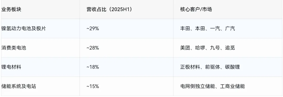 2025年业绩预增公告显示,镍电业务因核心客户销售量增加及降本增效,净利润实现显著增长;消费类电池业务因营收增长及持股比例提高而贡献增量。公司先后与美团、哈啰、九号公司、追觅科技等头部企业建立长期战略合作关系,产品应用延伸至电动两轮车、智能短途出行等高增长场景。