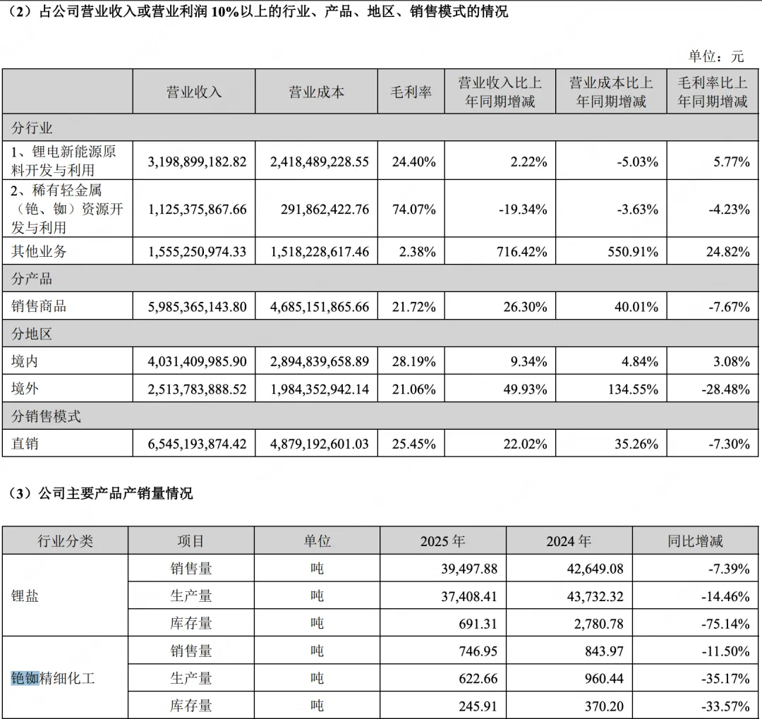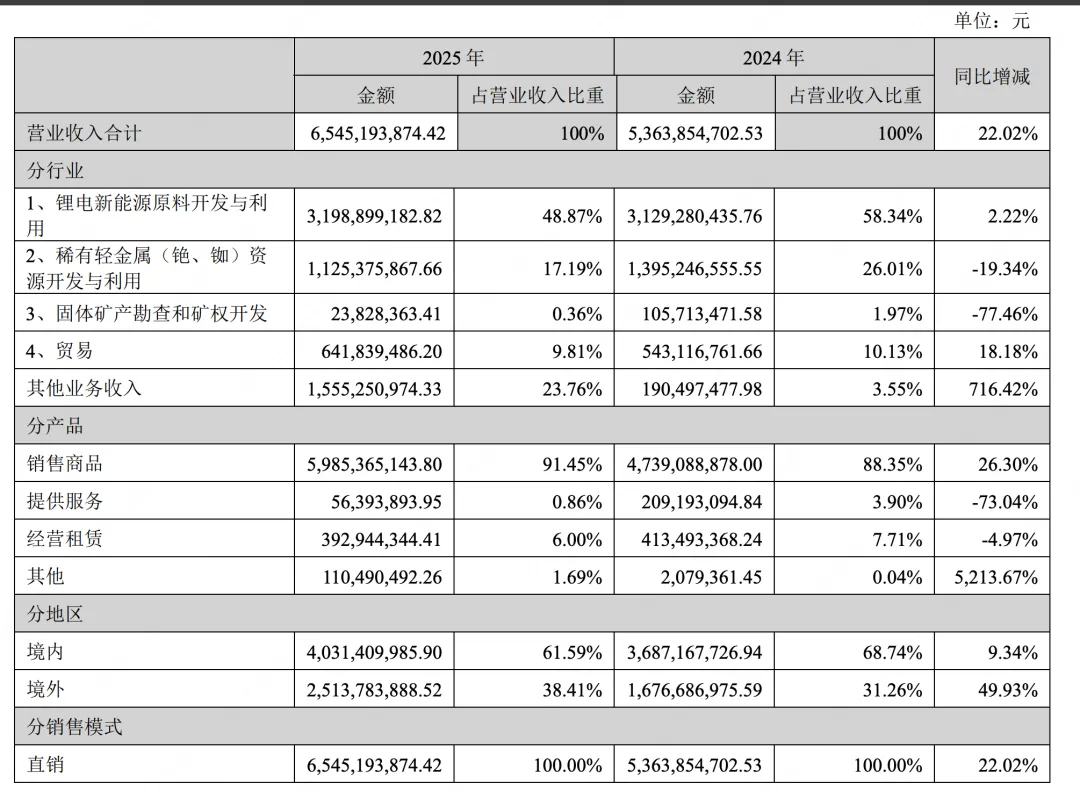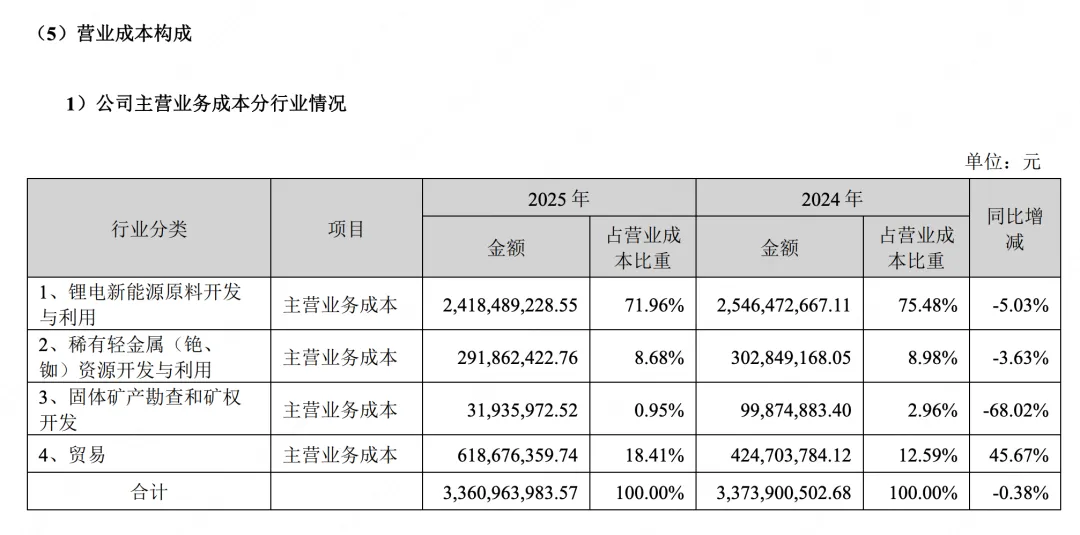 | 原生铯矿石储量 | 1,074.60 | 44.74 | 2024年“1,074.60万吨”是原生锂矿石总量,2025年“44.74万吨”是专门圈定的铯矿体储量(非全矿区),更聚焦经济可采部分。 |