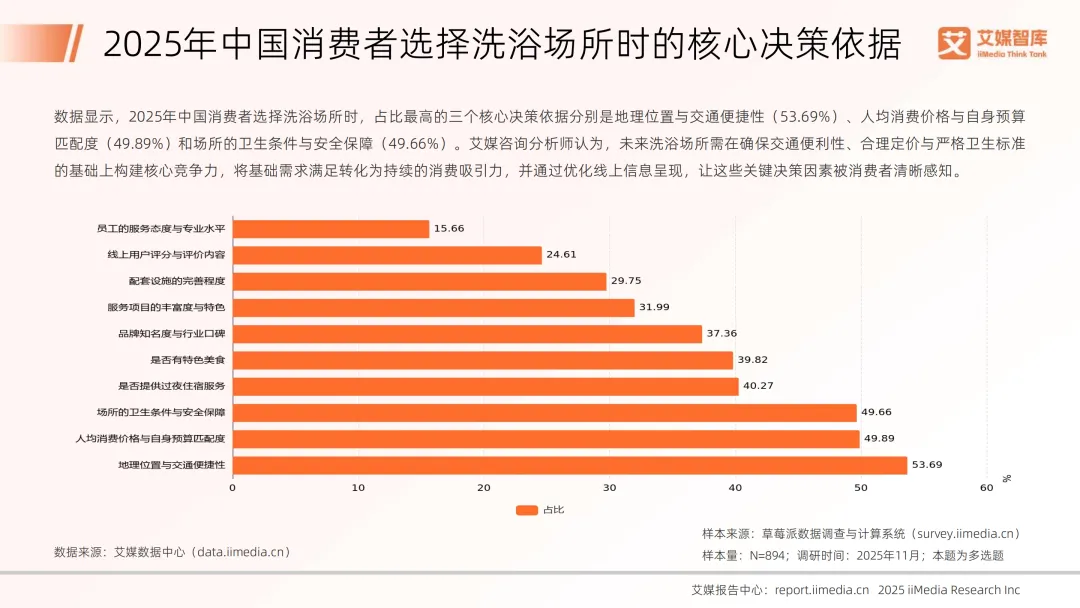 二线城市里26到40岁的职场人是核心消费群体,收入多在5001至20000元区间。他们选洗浴场所时,最先看交通是否便利,其次是价格能不能匹配预算,再就是卫生和安全有没有保障,这三点是影响选择的关键因素。