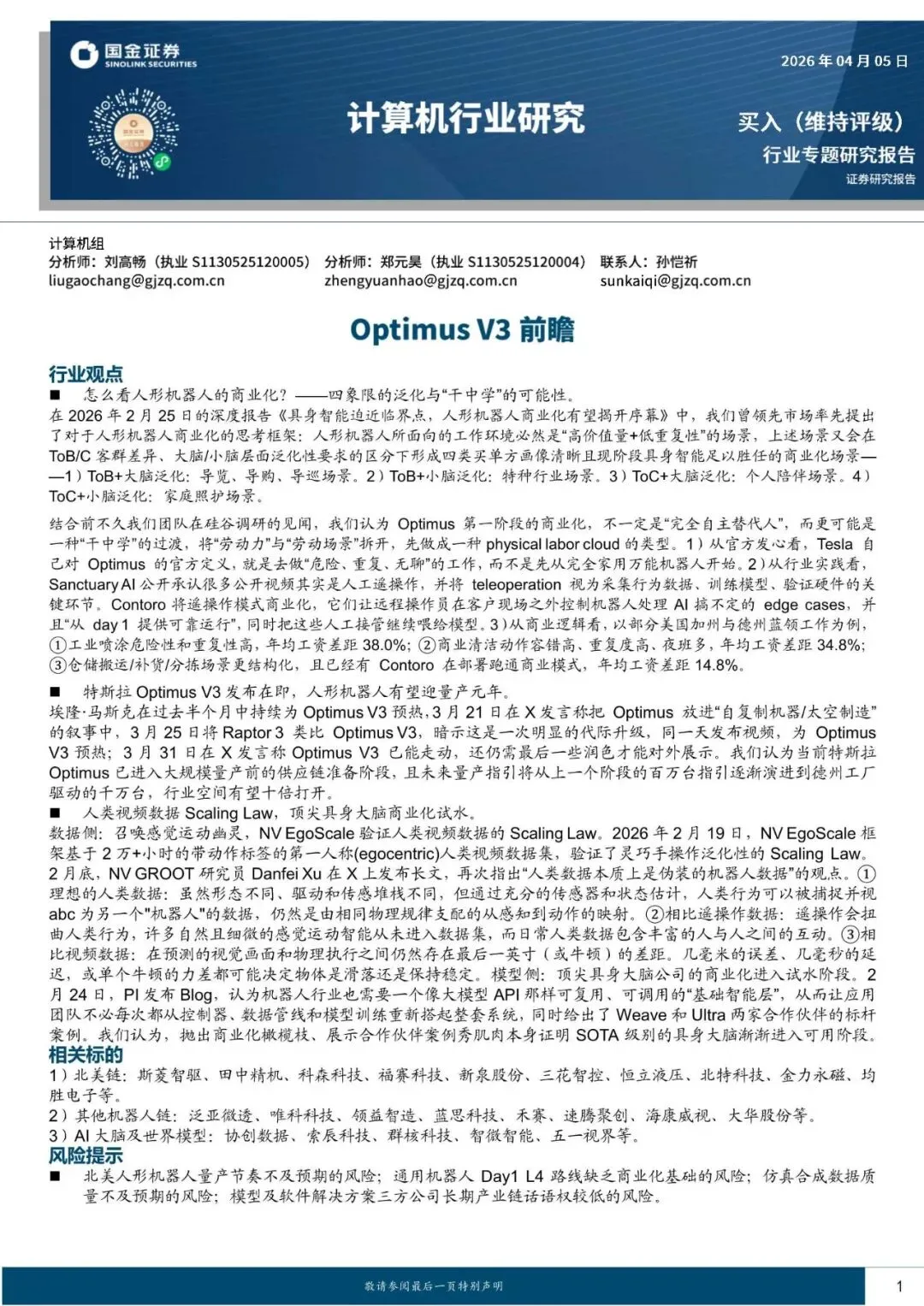 计算机行业专题研究报告:Optimus+V3前瞻-260405-国金证券-17页