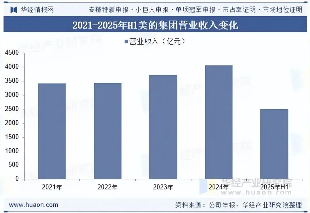 美的集团是中国干衣机行业龙头企业之一,2023 年,公司干衣机业务线上市场份额 40.5%,排名第一;线下市场份额 23.8%,排名第二。干衣机搭载全变频二代新技术,小型化高能量密度,在低噪音烘干快等方面的表现行业领先。根据公司年报显示,2025年上半年,美的集团营业收入为2511.23亿元。