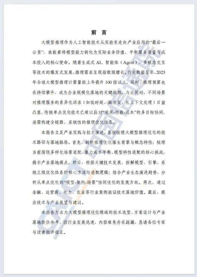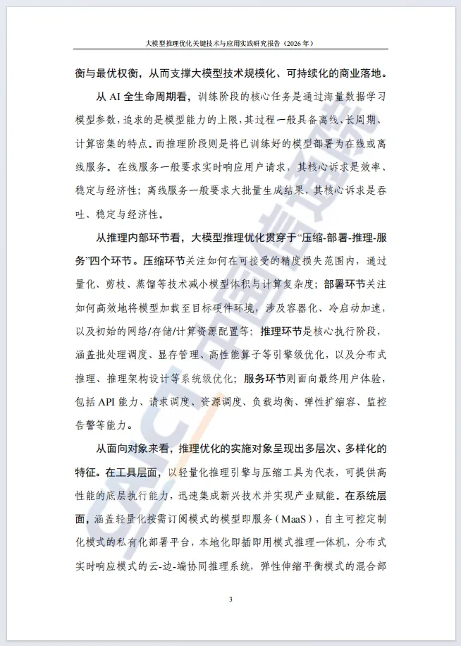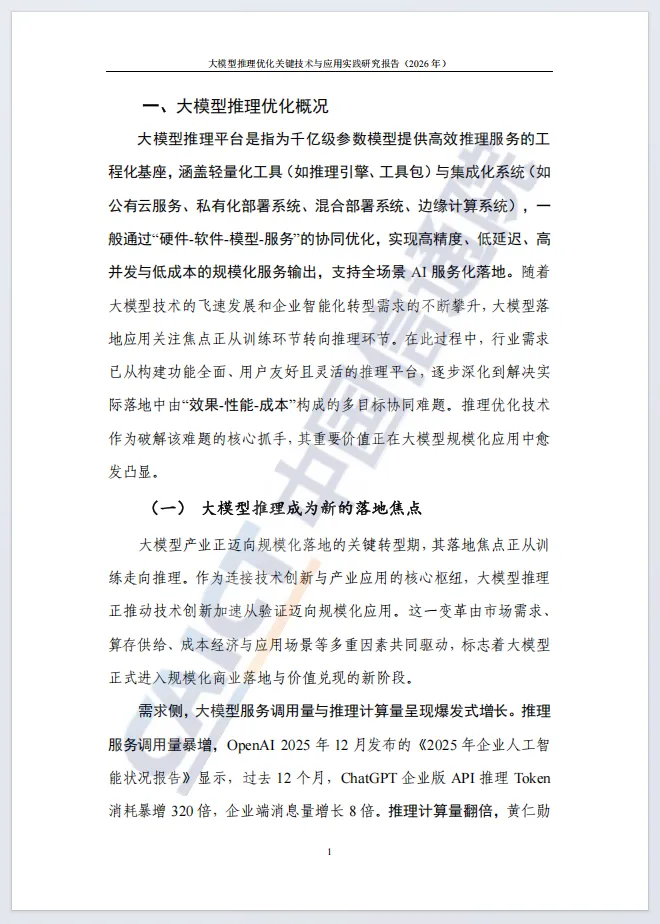 《大模型推理优化关键技术及应用实践研究报告(2026年)》由中国信息通信研究院、中国人工智能产业发展联盟联合发布,聚焦2026年大模型推理优化技术与产业实践。