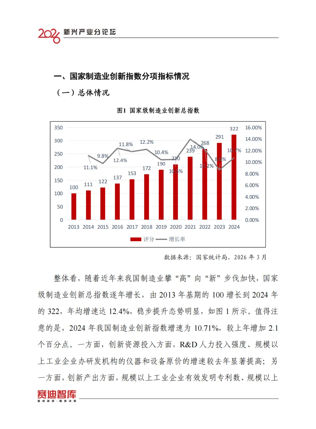 创新总指数高速增长:2013-2024年,我国制造业创新总指数从100增长至322,年均增速达12.4%。2024年增速为10.71%,较上年提升2.1个百分点。