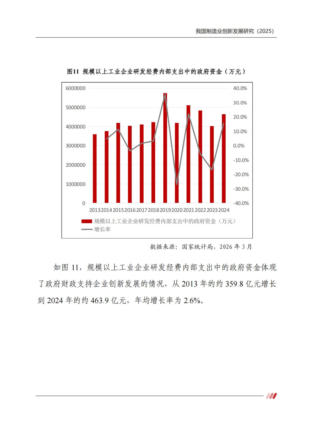 政府资金投入增速较低:规模以上工业企业研发经费中政府资金年均增速仅2.6%。