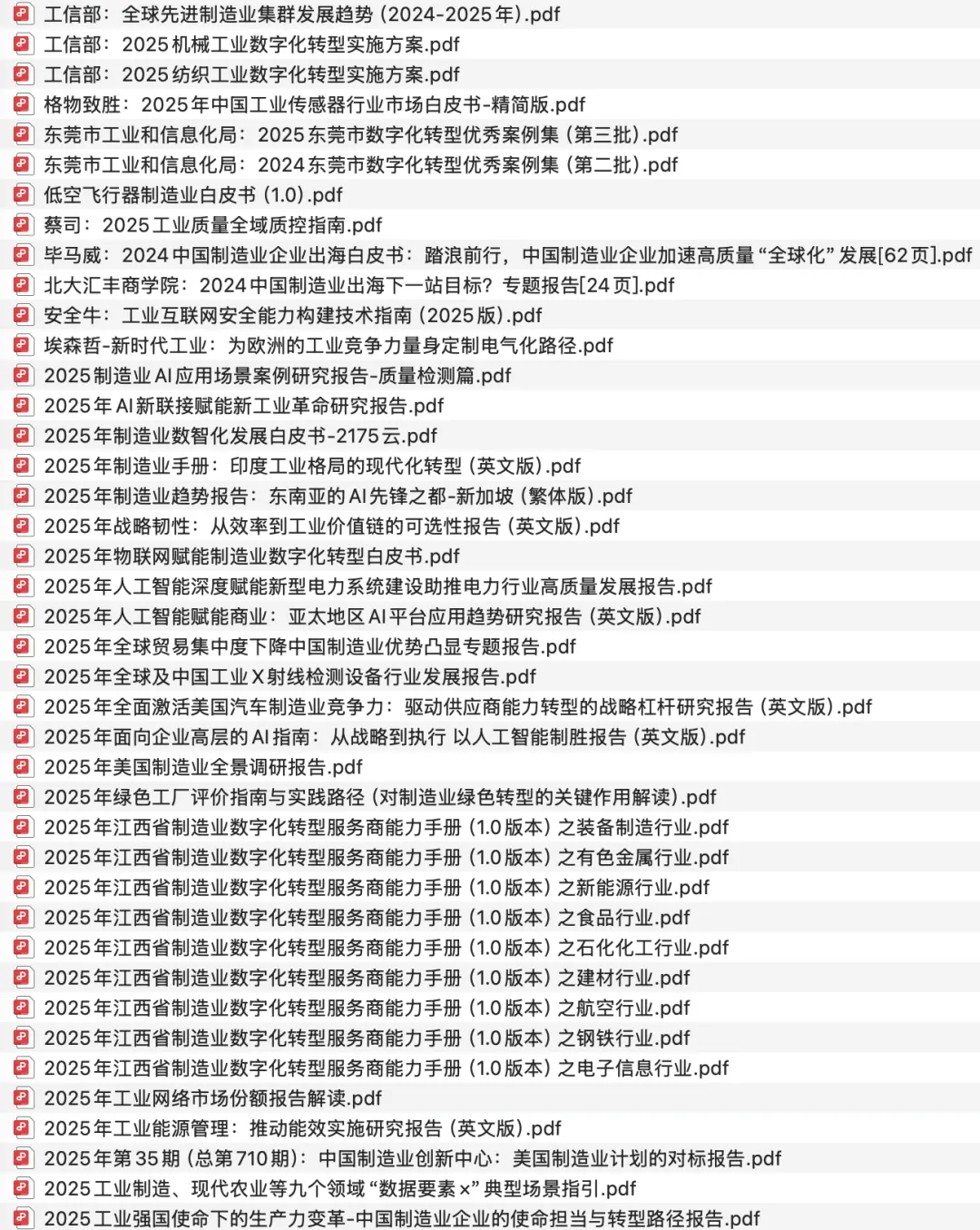 关注公众号,然后在首页对话框回复关键词“2025我国制造业创新发展研究”,