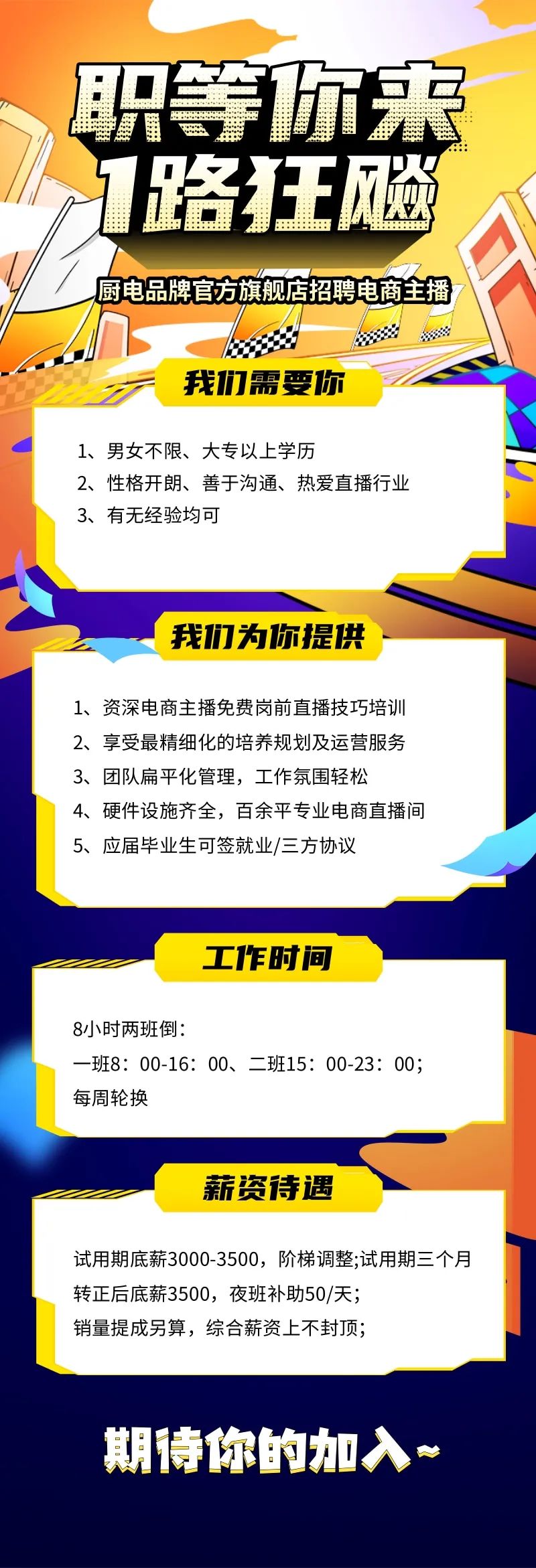 电商主播 | 专业团队、岗前培训、知名品牌、有无经验均可