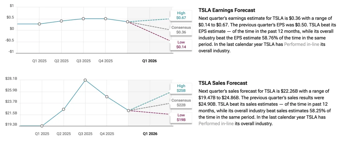 北京时间2026年4月23日(下周四)特斯拉将发布2026年第一季度财报。这是市场在2024、2025年连续两年交付量下滑、全年营收首次同比下降之后,对特斯拉基本面与AI叙事能否同步兑现的一次关键检验。