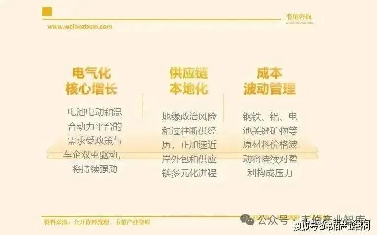 汽车零部件行业核心趋势展望:电气化仍是核心增长引擎、供应链本地化以增强韧性、管理原材料成本波动。