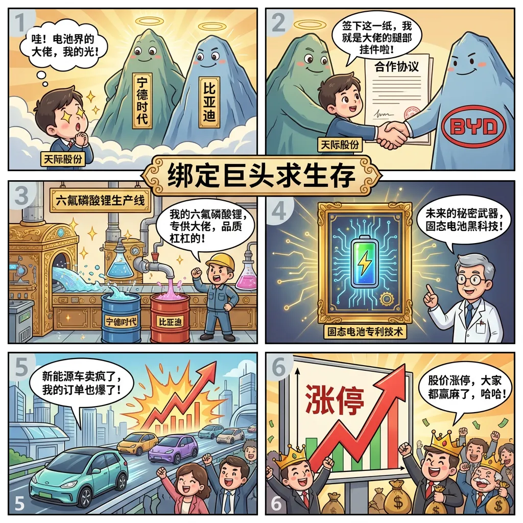 解读: 天际股份机遇与风险并存。机遇面:六氟磷酸锂需求旺盛,绑定巨头订单稳,固态电池有看点。风险面:仍在亏损,现金流紧张,行业周期性波动。适合能承受风险的投资者。