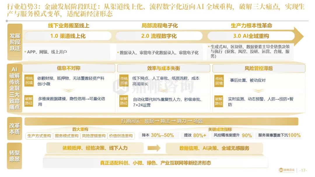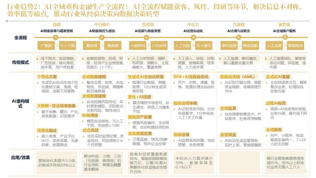 2025年我国金融业总资产达531.76万亿元,全行业完成从规模扩张到质量提升的核心转型。融资模式从银行信贷主导的间接融资,向多工具协同的直接融资体系转型;数字技术全域重构金融全业务流程,行业迈入AI全域重构的3.0阶段;财富管理行业彻底从卖方产品销售,转向以客户为中心的全生命周期买方资产配置。