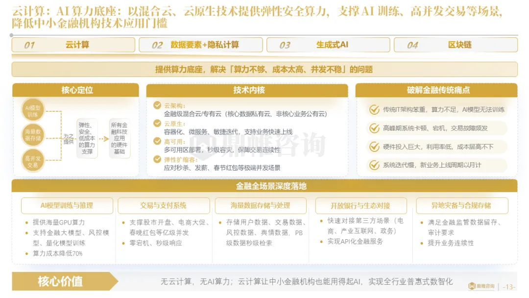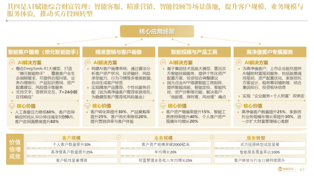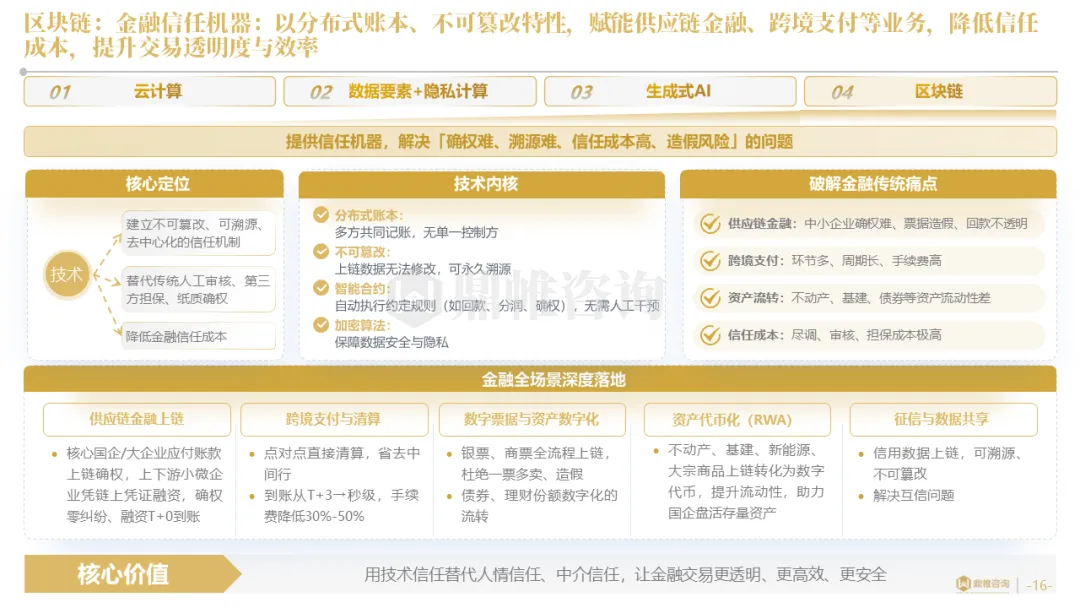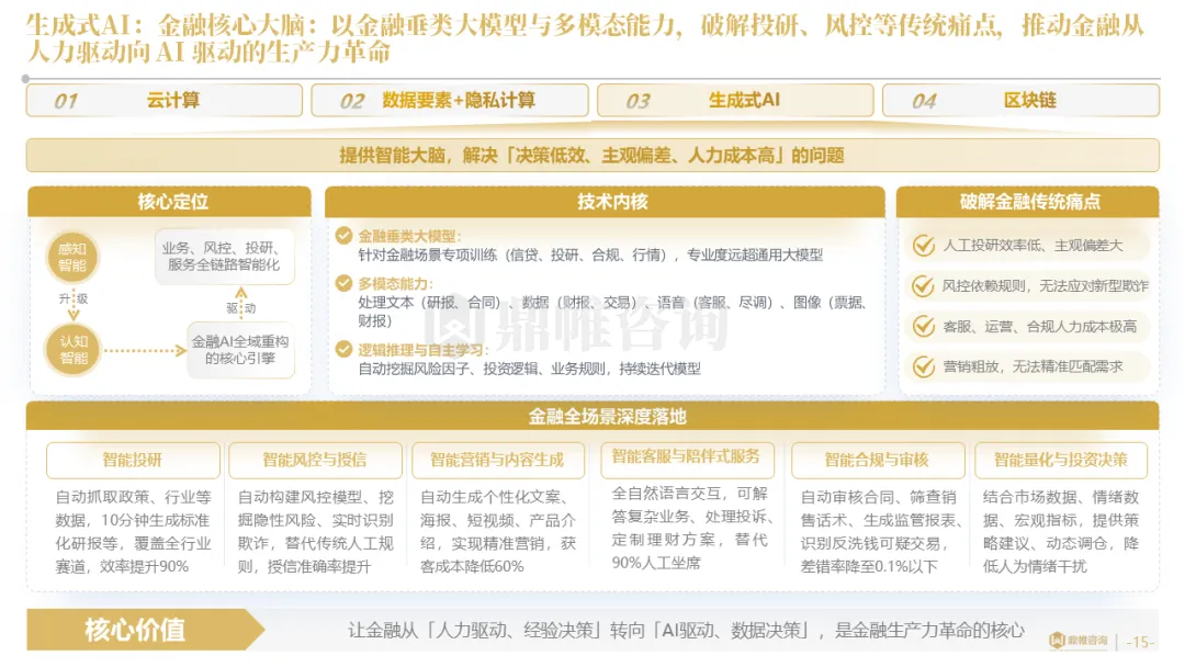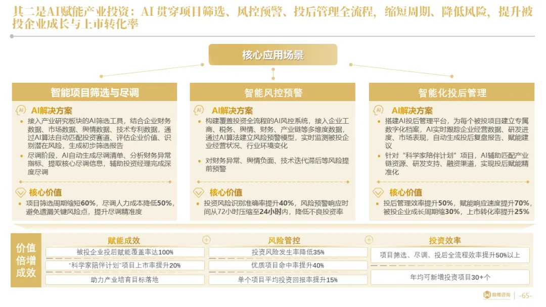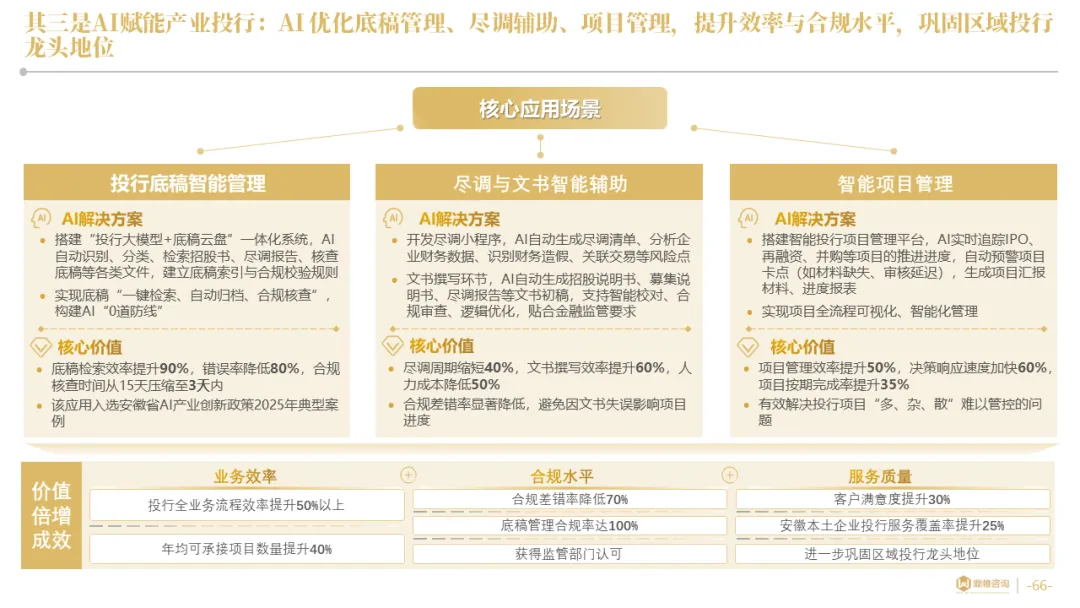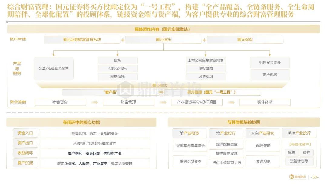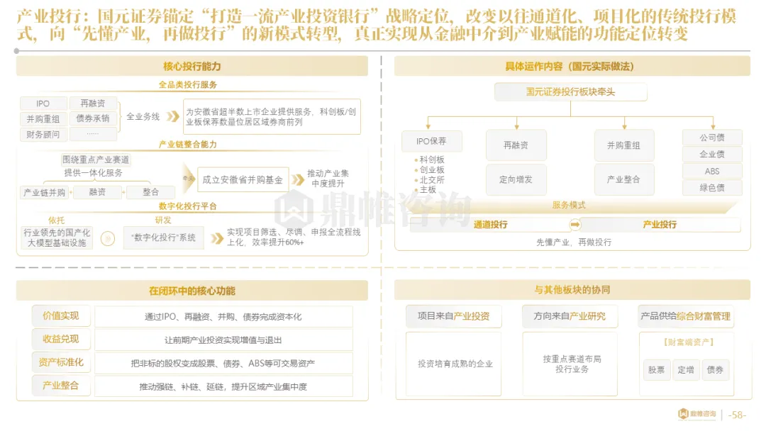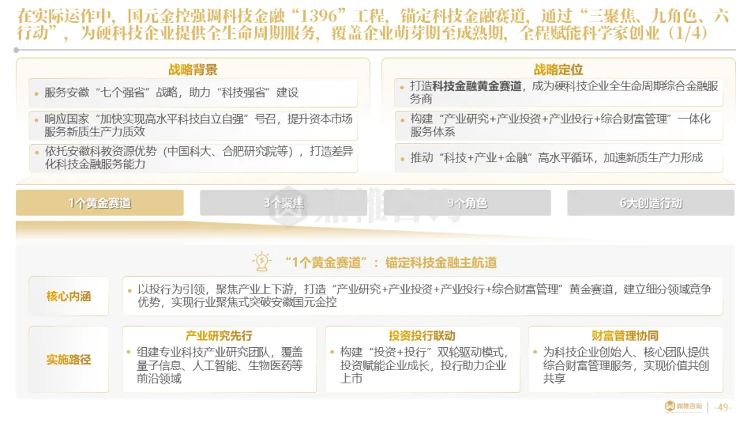 打造“产业研究+产业投资+产业投行+综合财富管理”四位一体产业金融闭环,形成完整的价值创造与资金循环链条,打破传统金控牌照拼凑、业务割裂的行业痛点;AI技术全流程赋能四大核心板块,配套统一信息共享、项目管理与常态化协同机制,保障业务闭环高效落地。