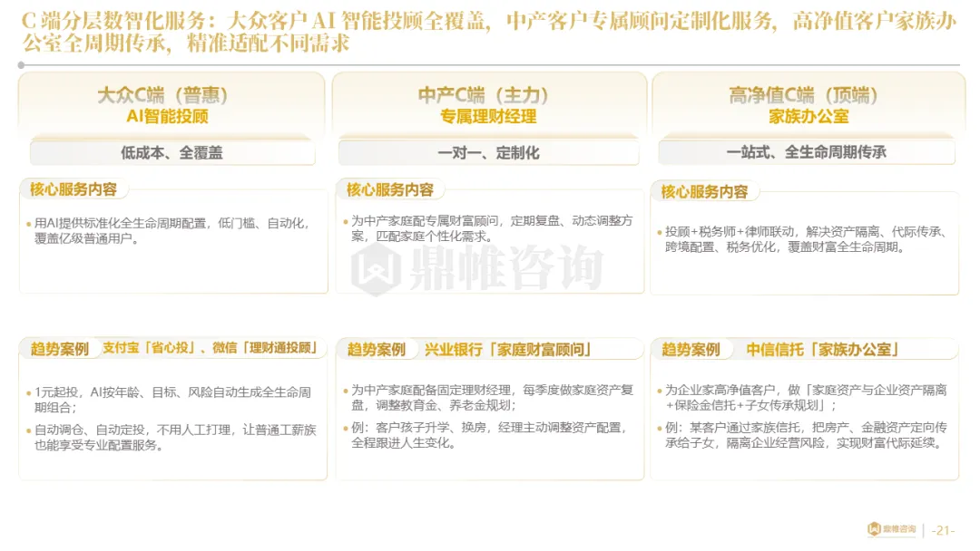 鼎帷管理咨询有着20年历史与专业积累,我们可以为您所在行业做好精准行业分析、十四五战略规划制定、战略执行分解与仪表盘监控、战略解码保障增长的颗粒归仓、经营分析与业务执行改进、针对业务行动的底层能力构筑、快捷高频的人才盘点识别关键人才、以战略为导向的绩效复盘、构筑以业务增长为导向的薪酬体系、打造符合竞争需要的智能化营销与业务策略方案等专项服务与产品。
