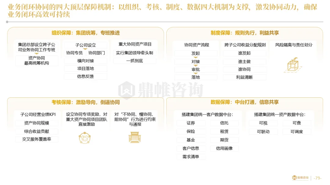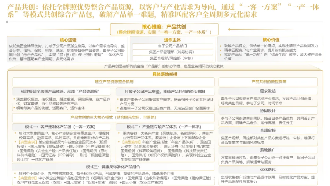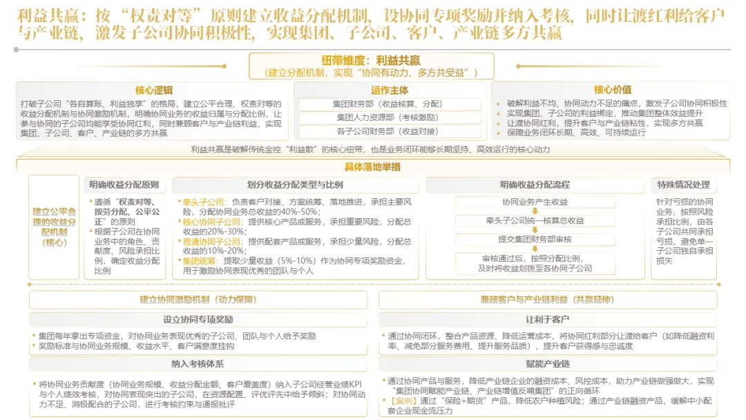 建立了客户共享、产品共创、风险共担、利益共赢四大核心协同机制,从底层破解传统金控协同动力不足的行业难题;配套全面风险管理体系与现代国企治理机制,将合规经营、风险防控贯穿业务全流程,为集团长期稳健发展筑牢底线。