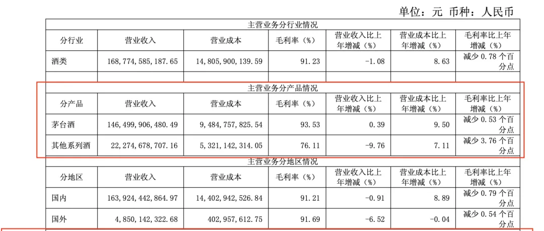 其次,茅台真的营收真的下降了吗?我们看看财报,显示茅台酒(飞天茅台)营收其实是微增的,系列酒(王子酒,迎宾酒等等)减少了9.76%。系列酒和其它白酒品牌(洋河,汾酒等等)是一样的,白酒只分飞天茅台和非飞天茅台,这两个东西虽然都叫白酒,但是是完全不同的东西。茅台酒并没有下降,即使是下降了很正常,正如历史上的茅台,每隔十几年都会调整一次。没有东西是只涨不跌的,保持平常心。
