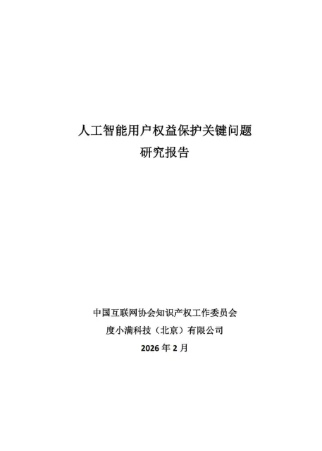 本报告由中国互联网协会知识产权工作委员会与度小满科技(北京)有限公司联合发布,发布于2026年2月。报告聚焦人工智能用户权益保护关键问题,厘清用户权益范畴,梳理国内外保护实践,重点剖析数据采集训练、生成内容失范、算法决策偏差、网络安全漏洞四大高风险场景的侵权机理与治理难点,从法律、监管、技术层面提出应对建议并梳理实践案例。报告无明确评级建议,旨在为监管机构、服务提供方及用户提供参考,推动AI产业健康发展与用户权益切实保障。
