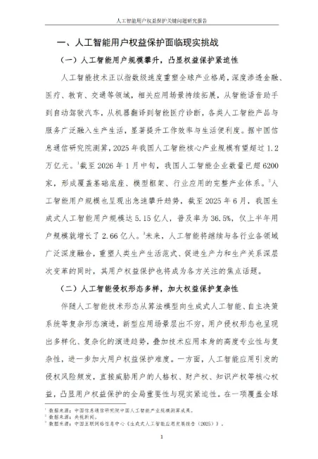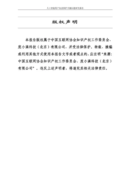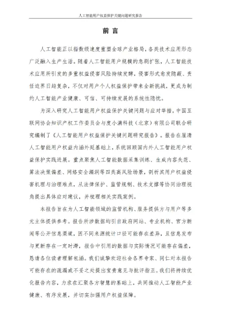 报告名称:人工智能用户权益保护关键问题研究报告_中国互联网协会知识产权工作委员会