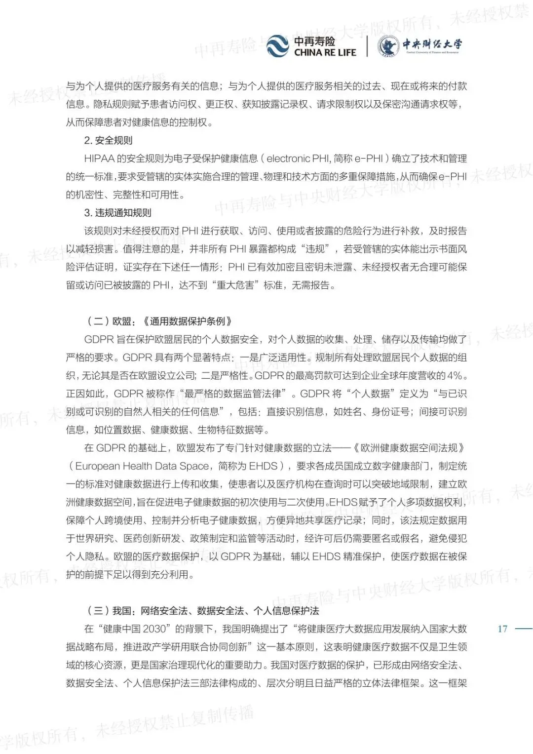 •欧盟GDPR:将健康数据列为特殊类别个人数据,遵循最小必要、可追溯原则,最高罚款达全球营收4%