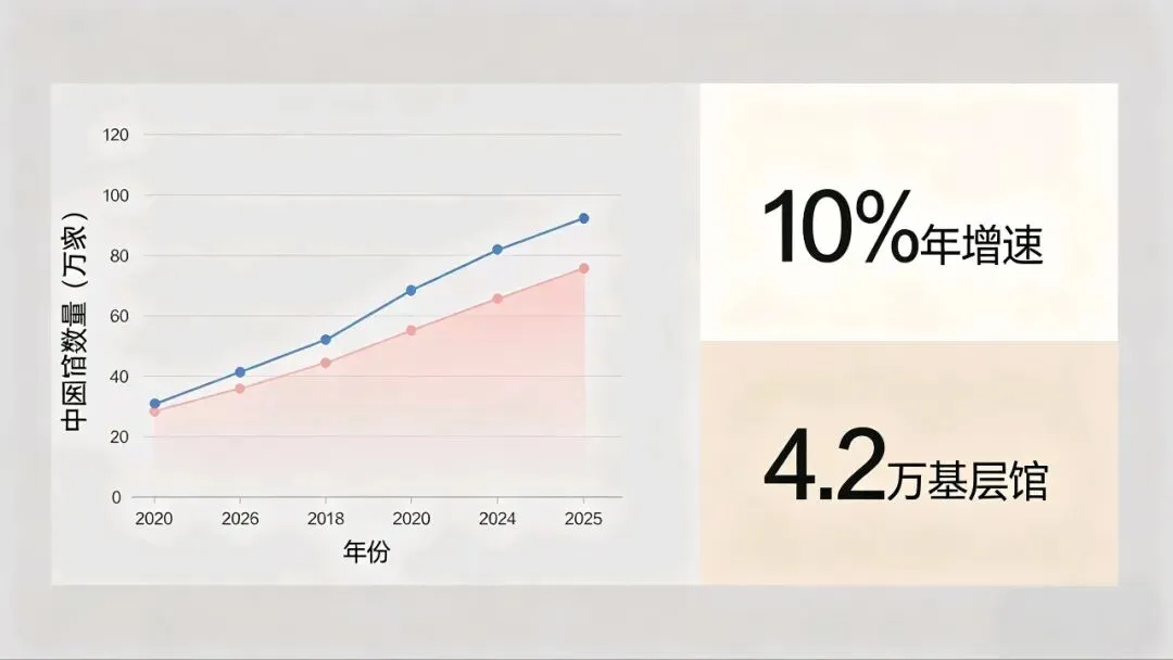 本次分析严格剔除公立中医医院、基层公立中医馆,仅聚焦市场化运营的民营中医诊所、中医堂、中医馆,所有数据基于2024年末官方统计基数,结合行业发展规律,按10%保守增速科学测算,精准还原2025年末行业真实规模。