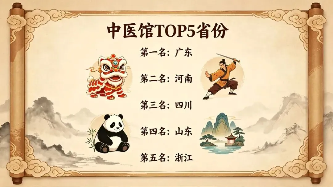 1. 广东:10560家,全国榜首,大湾区民营资本活跃,连锁化、高端化医馆密集,品牌化运营领跑全国