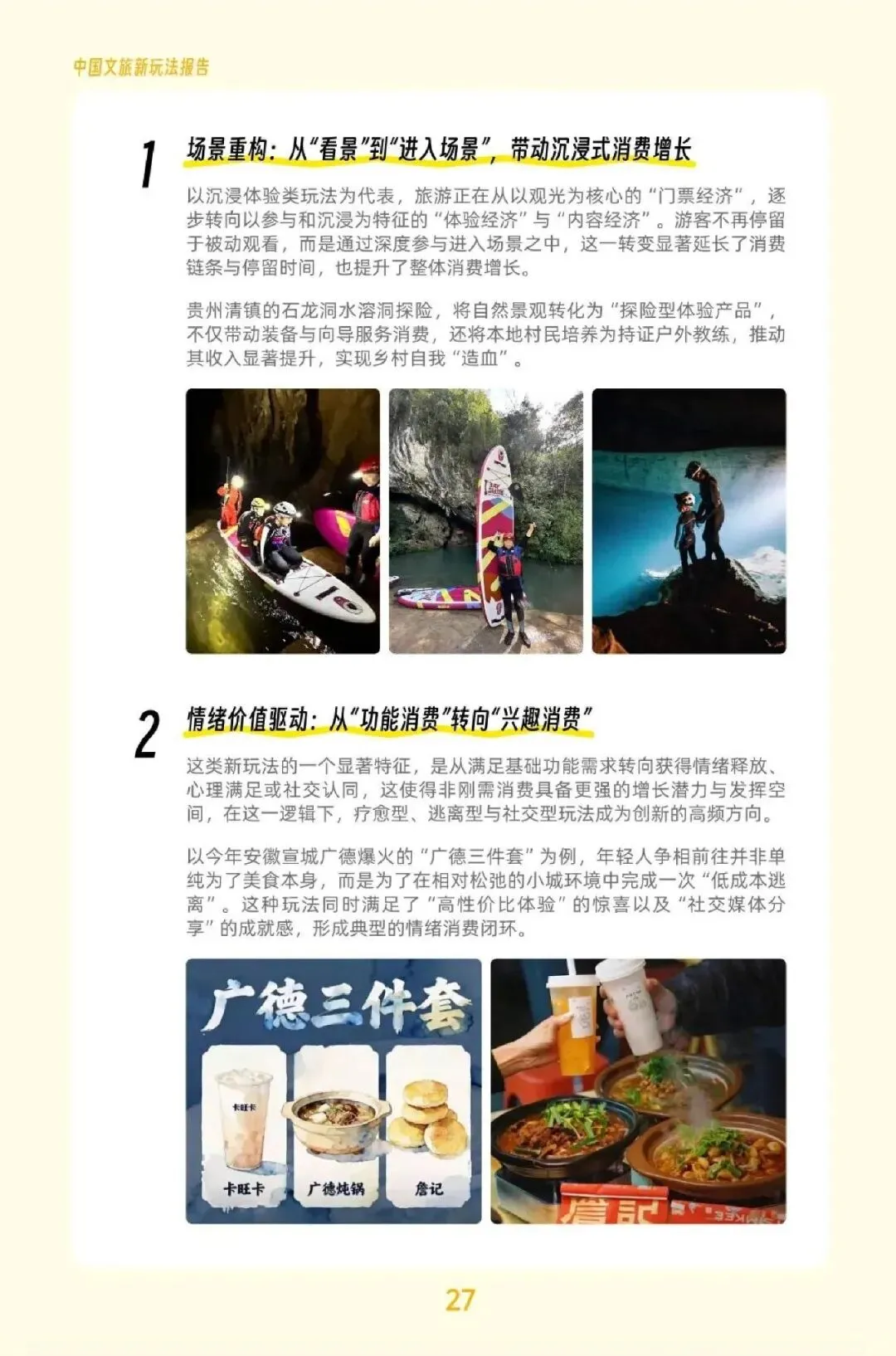 内容驱动转化的效率正在不断提升。新玩法天然具备强内容属性。其本身就是可传播的内容产品。在短视频和社交媒体的放大效应下。这些玩法能够快速完成从曝光到转化的闭环。大幅缩短用户的决策链路。那些具有强视觉冲击强参与属性和强标签记忆的玩法。更容易被用户记录和分享。内容不再只是传播的手段。而是直接驱动消费的引擎。实现了看见即消费的高效转化路径。这也要求目的地和文旅企业。必须更加重视内容的生产和传播。把内容能力作为核心竞争力来打造。