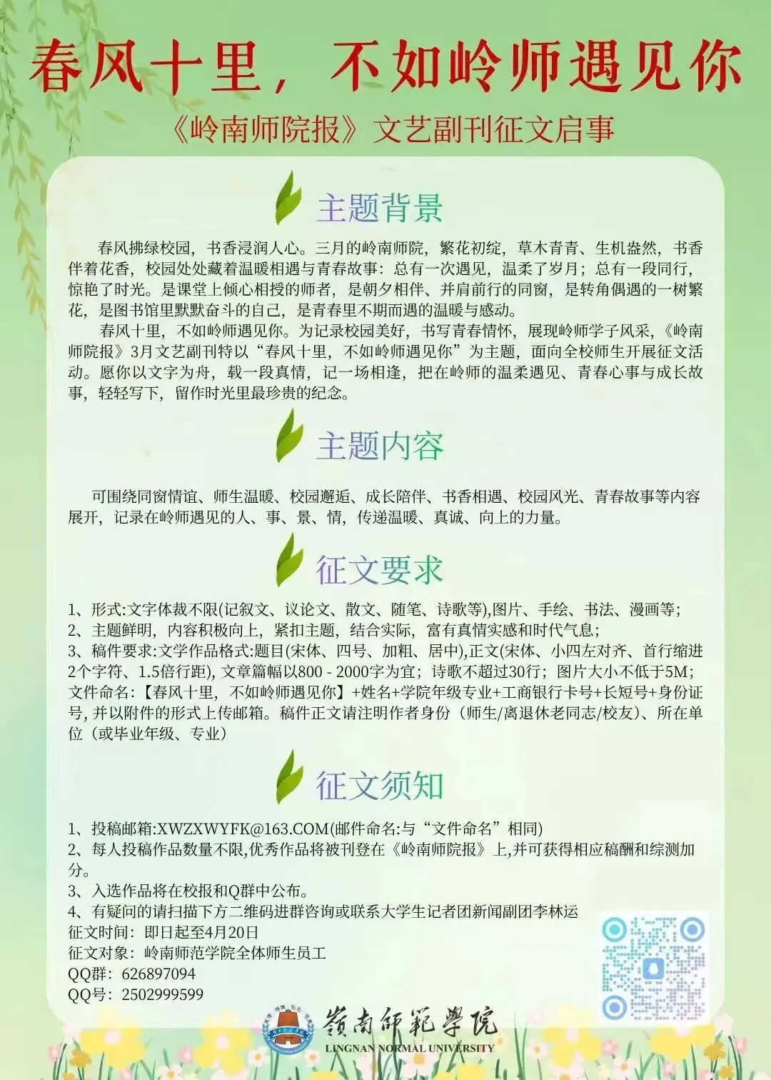 立足地方发展需求,深耕学术服务实践。我校计算机与智能教育学院倪光睿老师、电子与电气工程学院陈波教授(湛江市市政府决策咨询专家)深入湛江一线,通过实地走访、调研研判,系统梳理湛江产业发展实践,撰写形成《文旅搭台 广货出圈 打造“鲜美湛江”城市新形象》调研文章,并于4月17日在“广东社科”平台发布。该文精准提炼湛江以四大鲜品筑牢产业根基、以文旅搭台拓宽传播渠道、以深度赋能提升品牌价值的实践路径,生动展现了湛江鲜货从单一产品输出向“产品+品牌+文化+文旅”综合输出的转型跨越,立体呈现了“鲜美湛江”的城市内涵与发展活力。