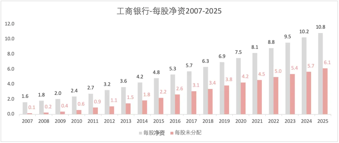 2025年,每股净资的复合增长率:工行为5.9%,中行2.3%,招行3.8%。