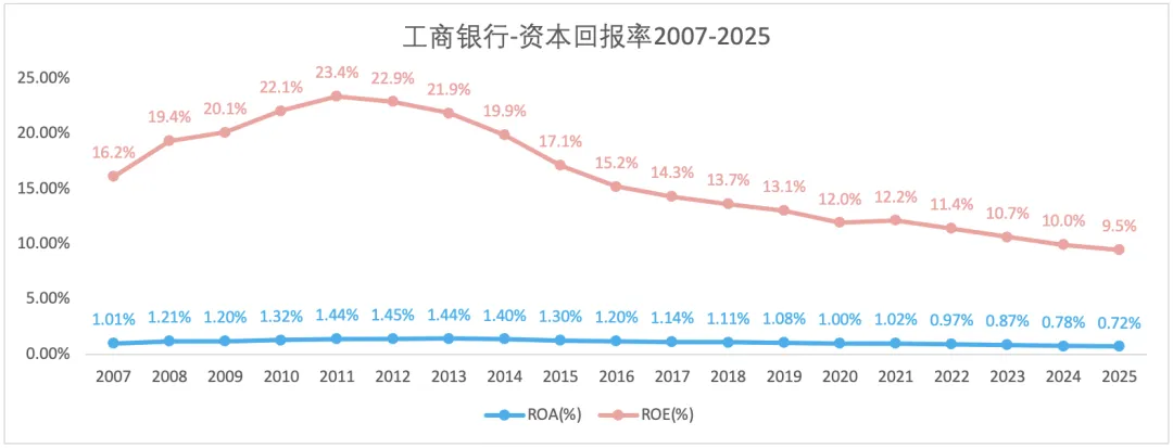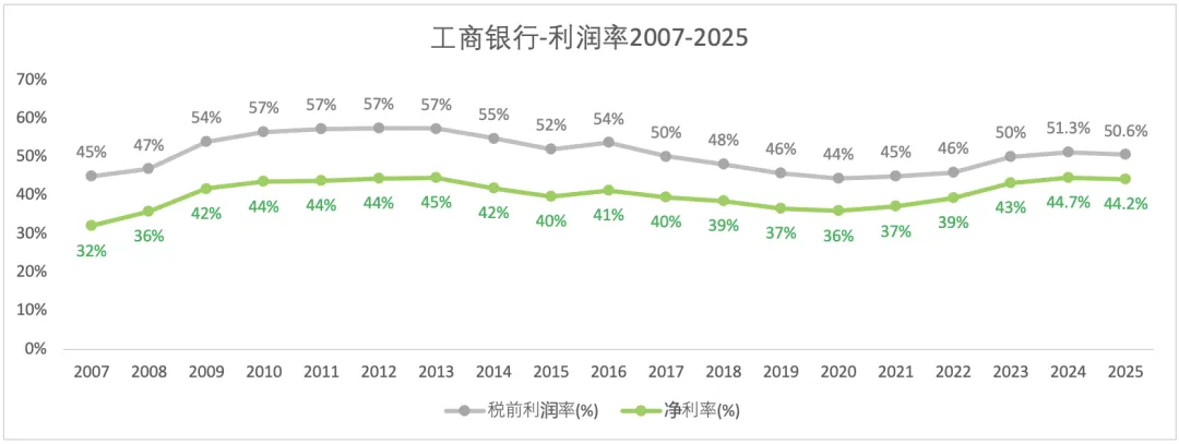 2025年,工行的税前利润率下降了0.7个百分点,净利率下降了0.5个百分点。