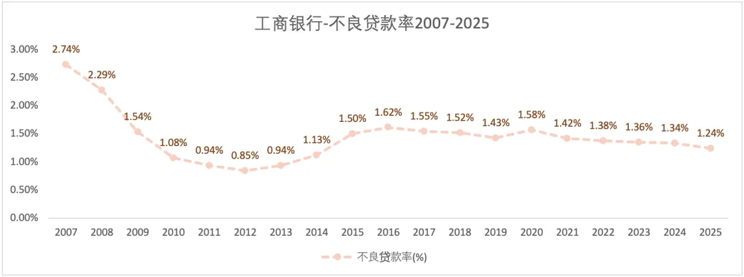 2025年,工行的税前利润率下降了0.7个百分比,主要是营业成本上升所致,具体来讲是由于资产&信用减值占比上升所致。