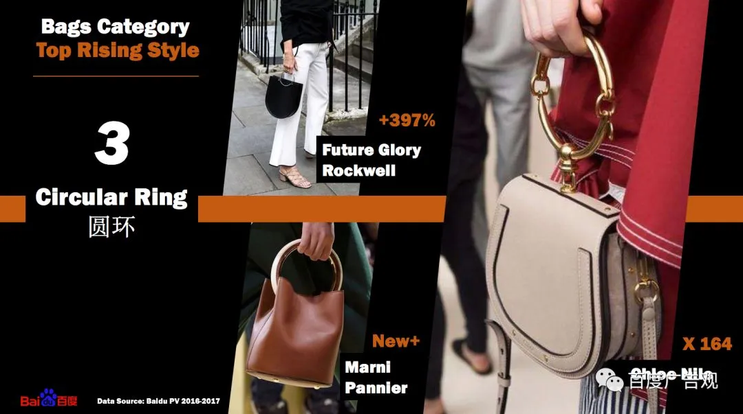 今年潮翻天的圆环包包简直是小伙伴们凹造型的必备神器,圆环给单调的手提包增加了立体感,大方简单的款式加上稍显冷硬的金属,帅气与时髦并存,其中检索量最高的是Chloe Niel,而小巧精致的水桶包也是圆环包包中的新宠,尤其是Marni新推出的Pannier,而美国旧金山的小众手工品牌Future Glory则是当下最Chic的单品。
