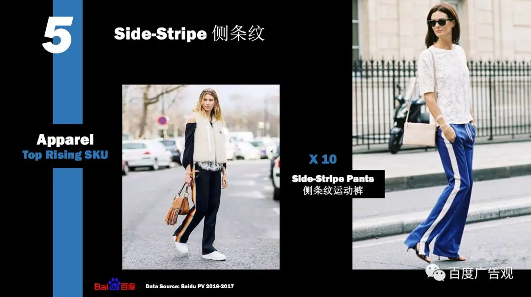 接着我们来看看增幅较快的品牌,首先是巴黎世家增幅3035%,领跑整个成衣品类,这也是受其现任设计总监Demna Gvasalia为品牌融入的街头元素所拉动的,从Logo帽子、可乐卫衣到老爹鞋,巴黎世家可谓是2017的爆款生产机器。男士在奢侈品上的追求也从不停歇,杰尼亚增长103%,主要来自于核心品牌词以及西装、衬衫产品的检索增长。此外,Coach受高端系列1941的拉动增幅73%,而Gucci也延续着2016年的辉煌,尤其表现在小白鞋和T恤等夏装产品上,整体品牌增幅67%。