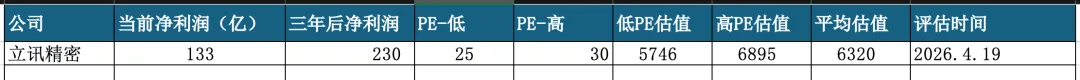 按照目前利润增速计算,三年后的利润预计为230亿左右。估值范围在5746亿到6895亿区间。