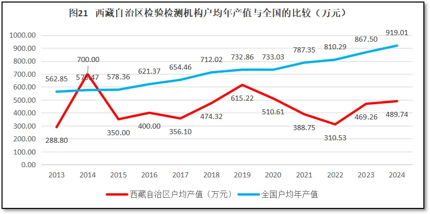 西藏自治区检验检测机构户均营业收入与全国情况的比较如图21所示。