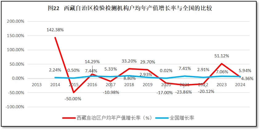 西藏自治区检验检测机构户均营业收入增长率与全国情况的比较见图22。