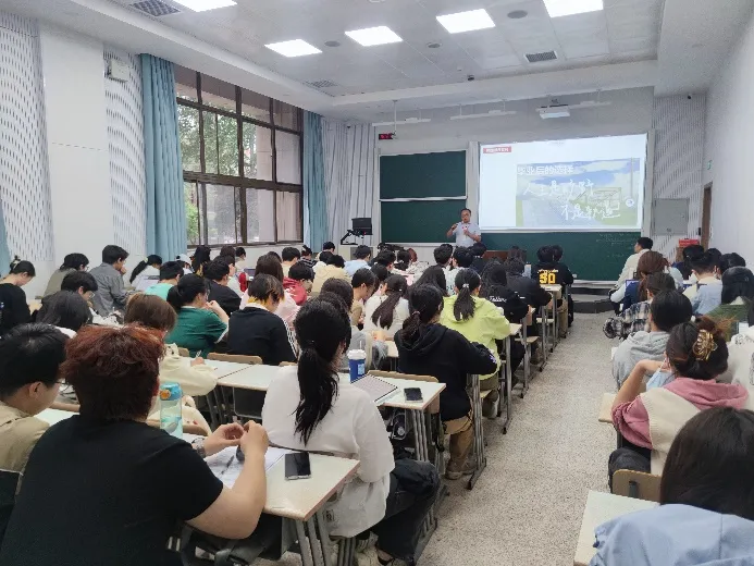 讲座伊始,文毅以互动提问的方式带领同学们重温西迁精神的核心内涵,将个人职业选择与国家发展大局紧密结合,树立正确的就业观与择业观。随后,他围绕大学生毕业就业形势、公职类考试备考建议等模块展开深入讲解。