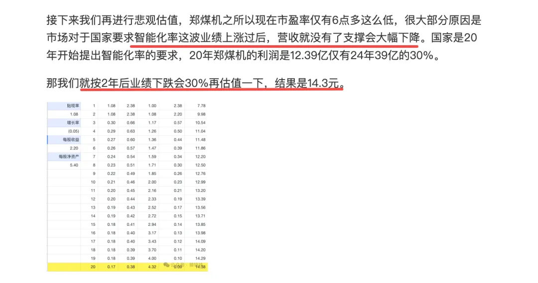 当时我在《投资四部曲案例一郑煤机(下)》的分析中做了3种预期的估值