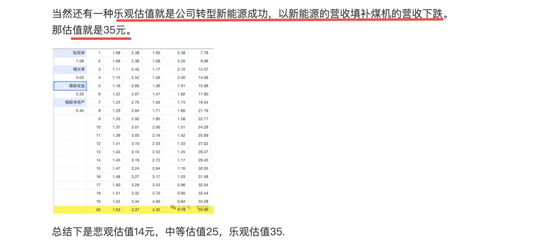 那么按今年新的财报看,随着煤炭行业的复苏,悲观估值的可能性大幅下降。
