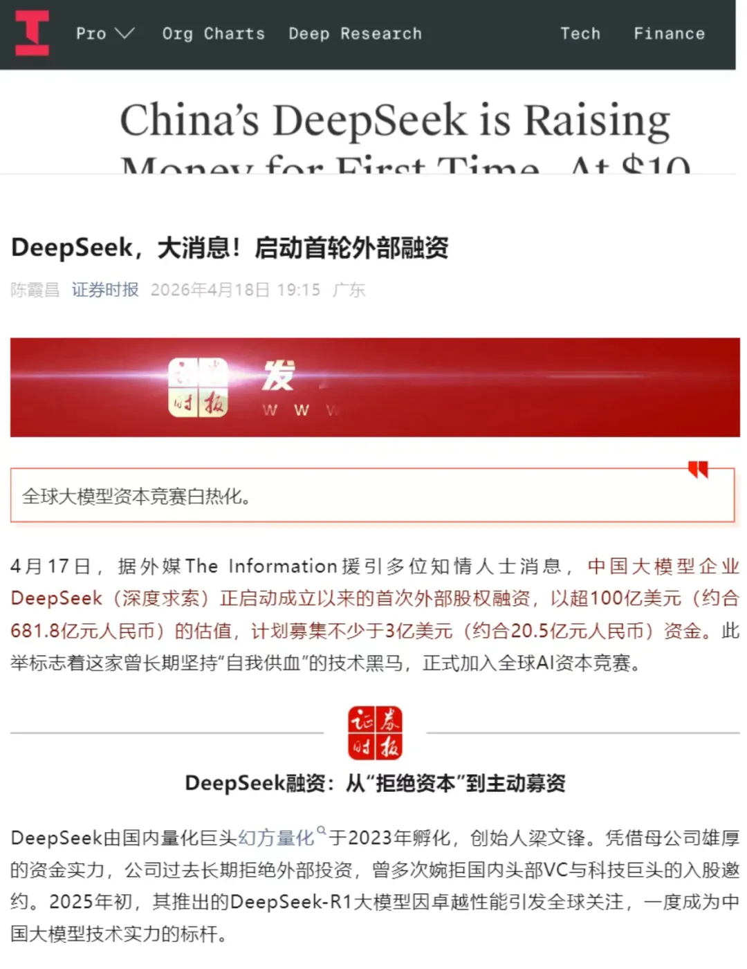 (2)据The Information:DeepSeek在首轮外部融资中寻求超3亿美元的资金,估值超100亿美元。