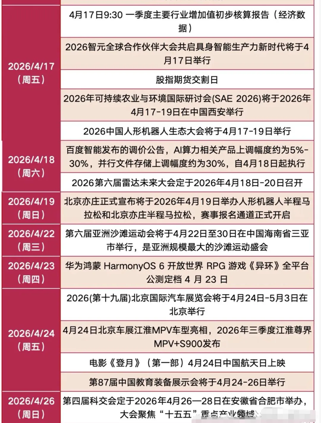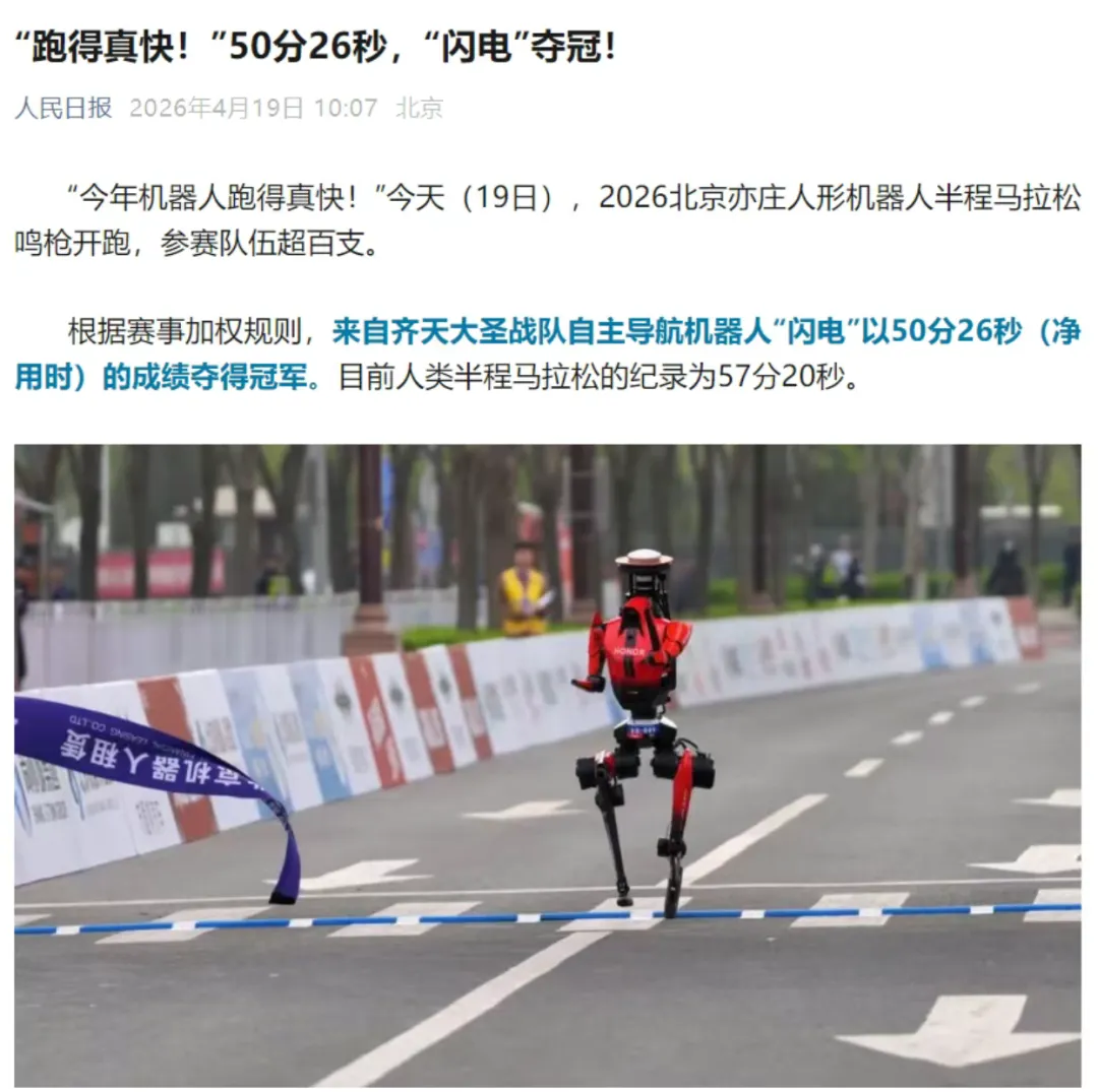 (8)人形机器人:今天,由北京市人民政府、中央广播电视总台等联合主办的2026人形机器人半程马拉松鸣枪开跑,参赛队伍超百支。荣耀“闪电”包揽北京亦庄机器人半马比赛前三。(多家上市公司互动易表示参与荣耀机器人)2、和谈