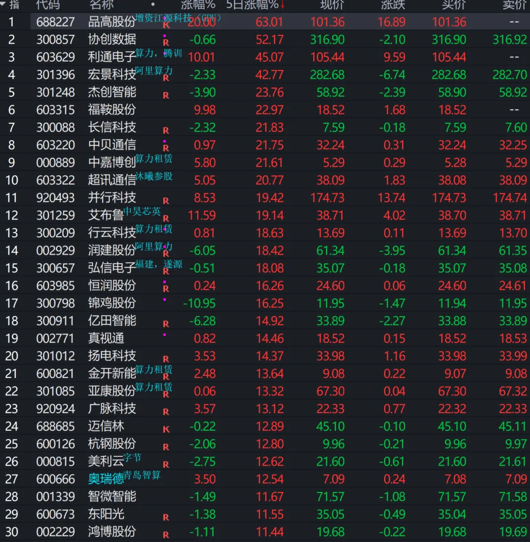 随着市场的脱敏以及内驱的轮动,市场表现出来了以AI算力为核心的趁势轮动新高,在上上周三的小周期内包函了很多小周期,都是以业绩财报公布之后带动板块以及情绪回流;如算力租赁的某创数据;商业航天端的碳纤维股某云新材、算力连板端的某阳股价(某通电子)、光通信端的某际旭创等都体现了这类小周期的轮动回流;在这个阶段这种持续还将继续,依旧会是轮动新高;能新高的,依旧是目前的主线含盖当中的主流;另外一方面,创业板指的带动牵引,缩量情况下就有限,而且看平均股价已经到了这波反弹的箱体顶端进入强压区;市场没有新的核心力量以及增量情况下,则会承压;上周的两个未来重要预期目前未依旧有预期差,未充分体现;请先关注公众号,用你发财的小手,点个在看,感谢转发推荐!风险提示:文中如涉及到部分标的,只做复盘之用,皆不做推荐,特此说明;股市有风险,投资需谨慎!