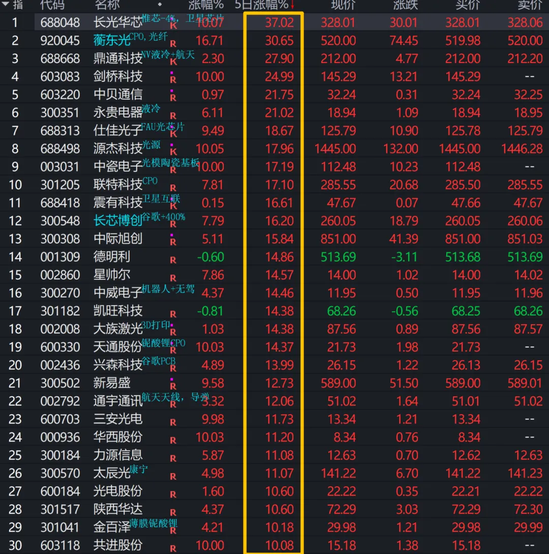 三、个股周涨幅排名(趋势轮动新高)